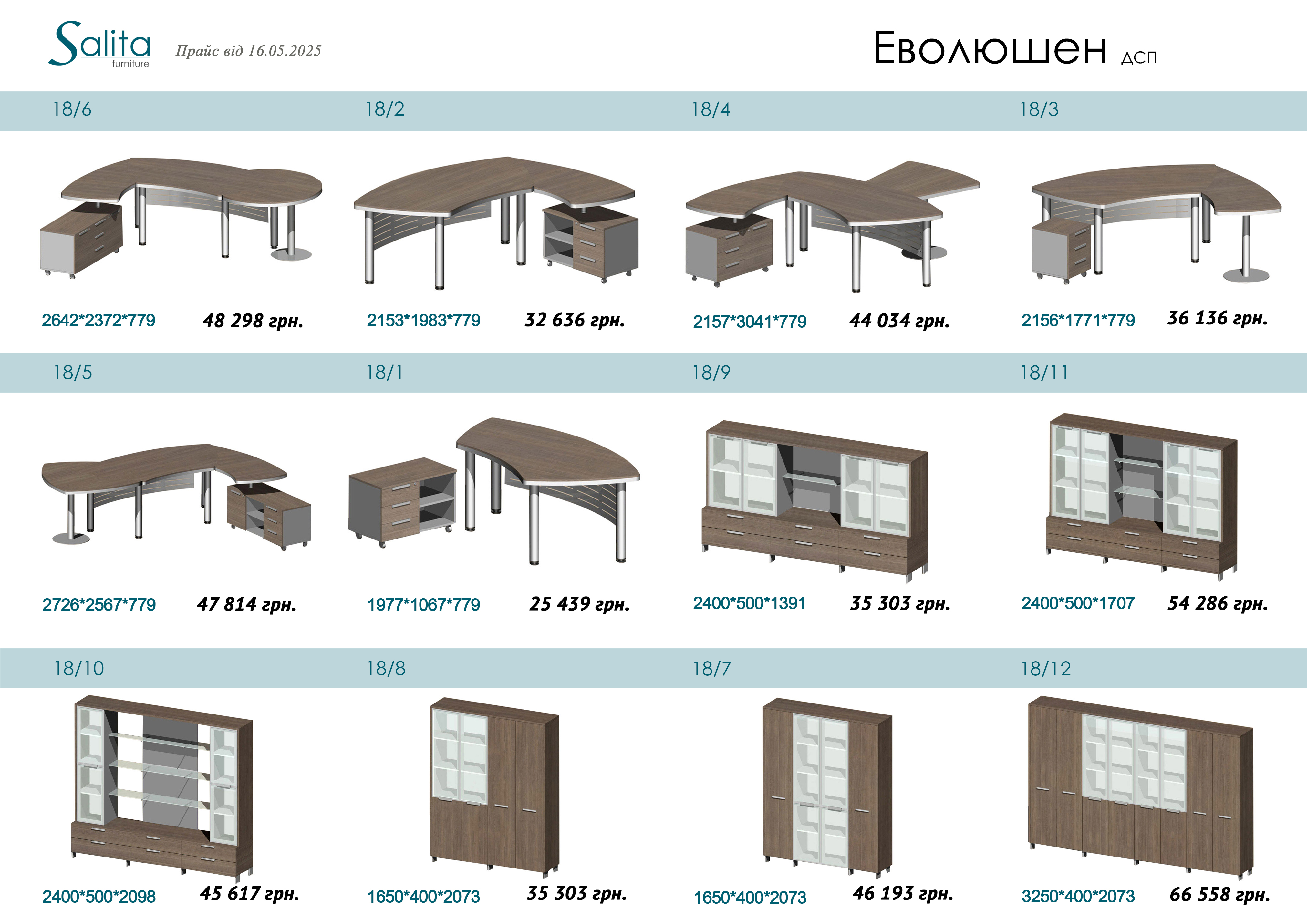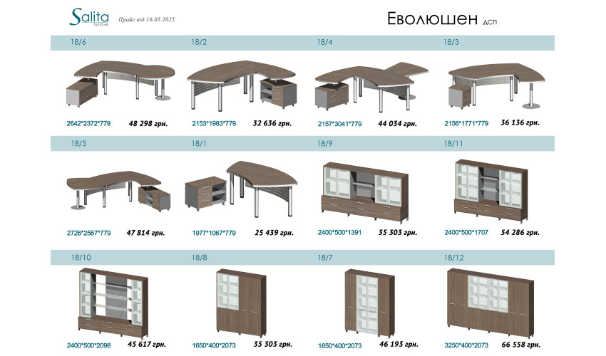 Кабінет Evolution підійде керівнику, який хоче бачити свій робочий простір максимально легким і сучасним. Функціональність і характерні форми, гармонійне поєднання скла і металу вигідно підкреслюють стиль хай-тек кабінету "Еволюшен".
