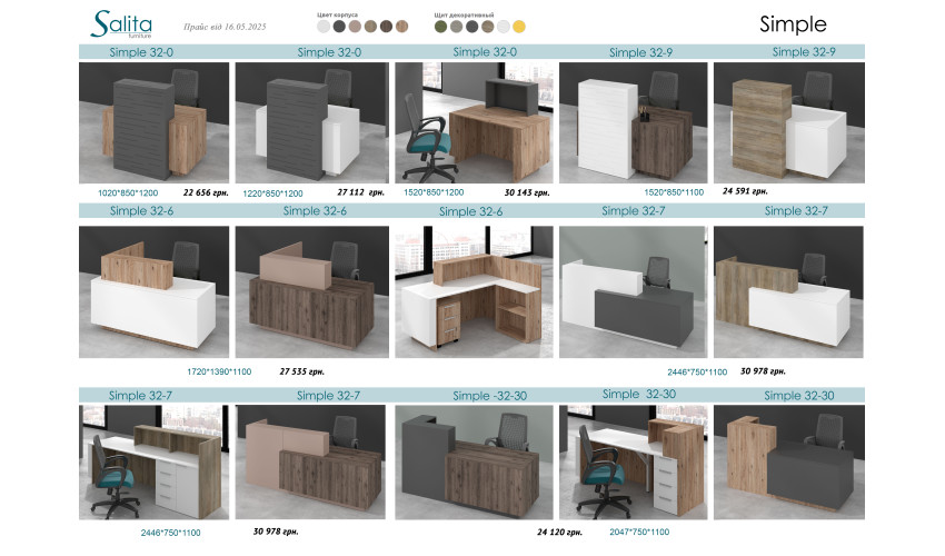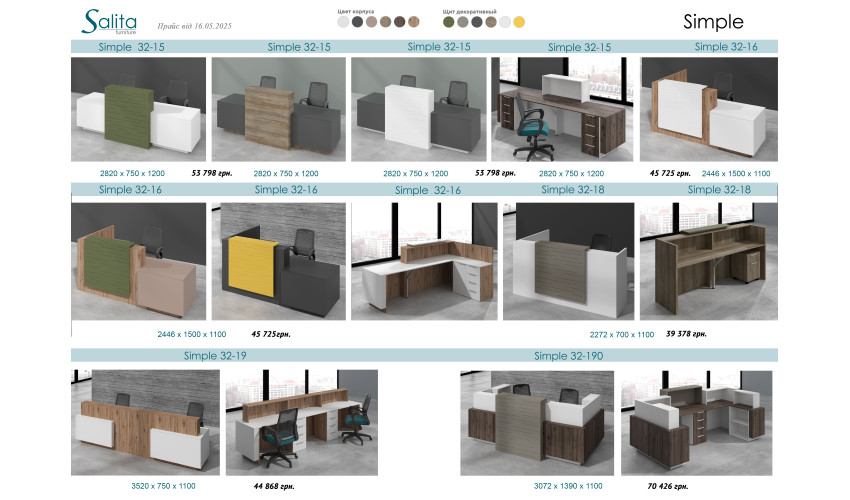 SIMPLE reception идеально сочетается с серией мебели для персонала PROMO, позволяя, тем самым, обустроить офис в едином стиле и цветовых решениях.