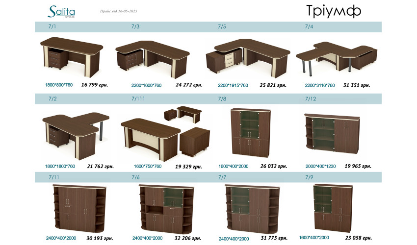 Кабинет Триумф соединил в себе нетрадиционное цветовое сочетание и классическую строгость форм, что выгодно подчеркивает его индивидуальность и стилевую оригинальность. Создан специально для руководителей, которые ценят время и деньги.